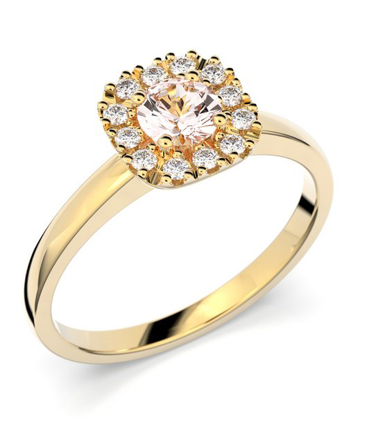 Kotimaisessa Festive Josefiina 596-042M-KK-halo-morganiittitimanttisormuksessa yhdistyy klassinen halo-istutus sileään modernismiin. Sormusta koristaa tyylikkään näyttävä nelikulmainen kivi-istutus ja istuksen keskellä suurempi 0,30 karaatin briljanttihiottu vaaleanpunainen morganiitti, jota reunustaa 12 kappaletta 0,01 karaatin pienempää timanttia. Klassinen briljanttihionta korostaa kauniita kiviä, jotka hohtavat sormuksen sileää runkoa vasten. Halo-mallinen Josefiina on upea yksinään, ja se on helppo myös yhdistää myös muihin sormuksiin, ja rakentaa juuri itselle sopiva kokonaisuus.