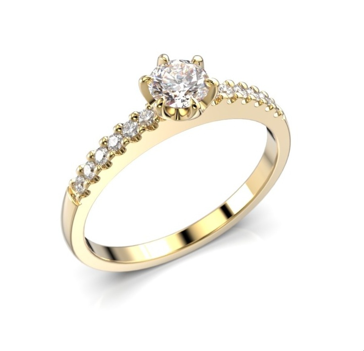 Festive Julianna Kruunu 0,42 ct sivukivisormus timanteilla keltakulta 669-105P-KK on ajaton ja elegantti sivukivisormus, jota koristaa 12 0,01 karaatin timanttia ja yksi suurempi 0,30 karaatin timantti. Rungon materiaalina on käytetty (valintasi mukaan 14K tai 18K) keltakultaa, ja flakkamallin reunat on kevyesti pyöristetty, jolloin sormus istuu tukevasti ja pehmeästi sormessa. Sormuksen leveys on 1,9 mm. Istutuksen kohdalta sormuksen koko on 4,2 mm. Julianna-sormuksesta on saatavana myös ruusu- ja valkokultaversio.
