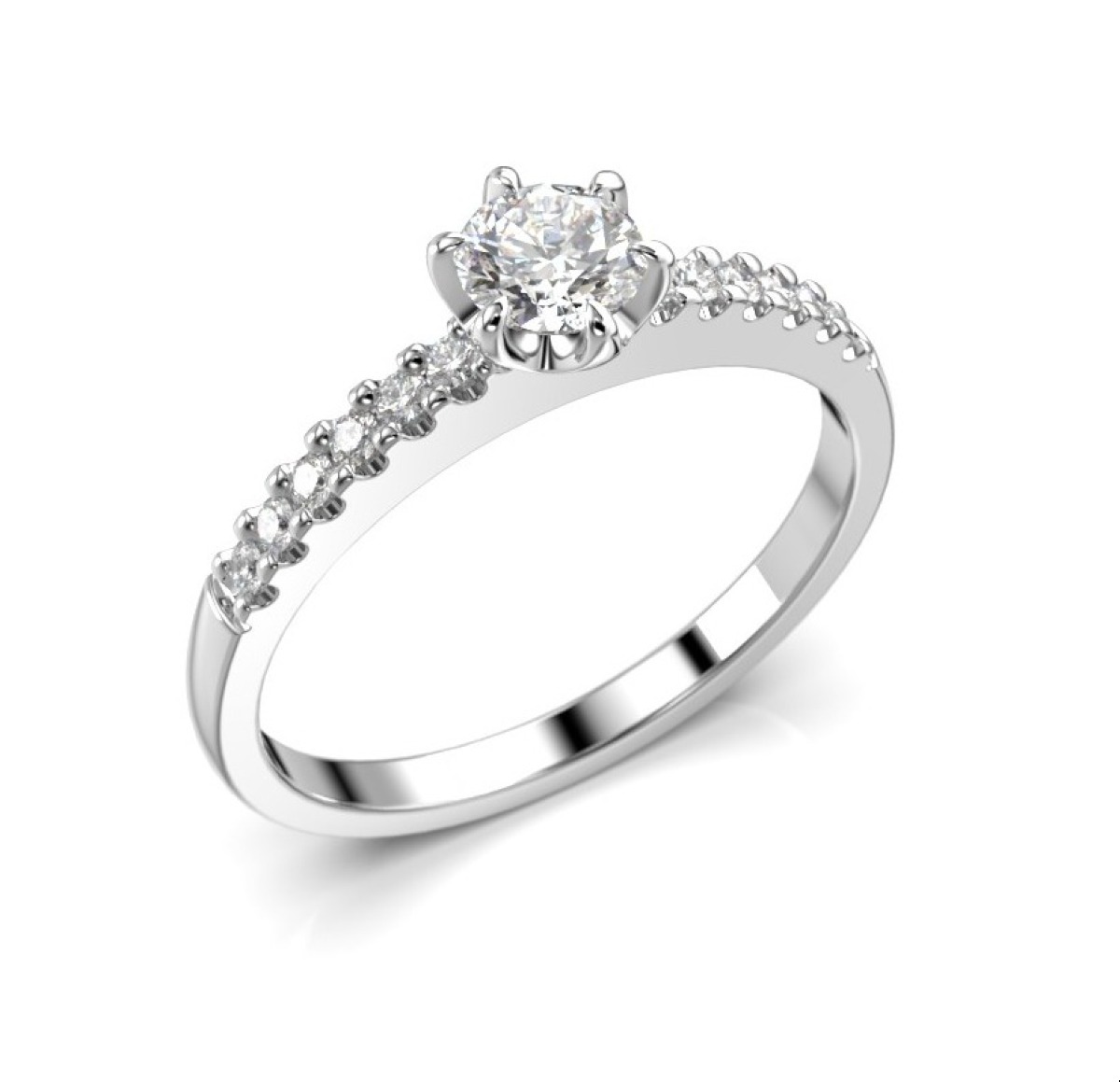 Festive Julianna Kruunu 0,42 ct sivukivisormus timanteilla valkokulta 682-042-VK on ajaton ja elegantti sivukivisormus, jota koristaa 12 0,01 karaatin timanttia ja yksi suurempi 0,30 karaatin timantti. Rungon materiaalina on käytetty (valintasi mukaan 14K tai 18K) ruusukultaa, ja flakkamallin reunat on kevyesti pyöristetty, jolloin sormus istuu tukevasti ja pehmeästi sormessa. Sormuksen leveys on 1,9 mm. Istutuksen kohdalta sormuksen koko on 4,2 mm. Julianna-sormuksesta on saatavana myös kelta- ja ruusukultaversio.