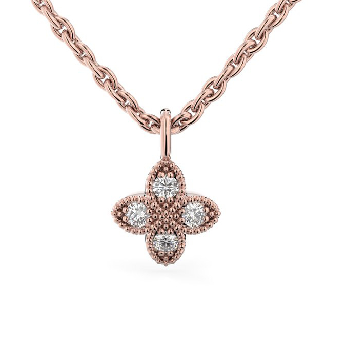 Riipuksen materiaaliksi voit valita joko 14- tai 18 karaatin ruusukullan, ja mallista on saatavana myös valko- ja ruusukultaversio ja yhteensopivat korvakorut. Riipusketju myydään erikseen.