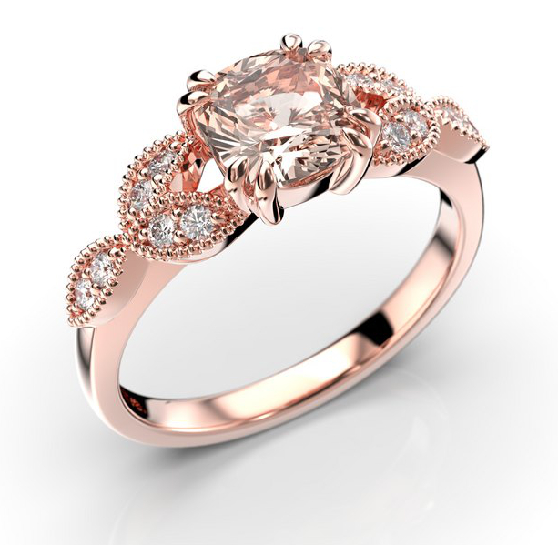 Festive Madison 586-092M-PK on näyttävä morganiittitimanttisormus, jossa yhdistyy suuri cushion-hiottu vaaleanpunainen morganiitti romanttiseen markiisikehykseen, pitsireunukseen ja ilmeen viimeistelee kirkkaat briljanttihiotut timantit antaen sormukselle ainutlaatuisen ilmeen. Sormuksessa risteilee kauniisti useat eri värit, ja 2 mm leveä flakkarunko on miellyttävä sormessa. 12 timantin yhteenlaskettu karaattiluku on 0,12 karaatia ja morganiitti on 0,80 karaattia.