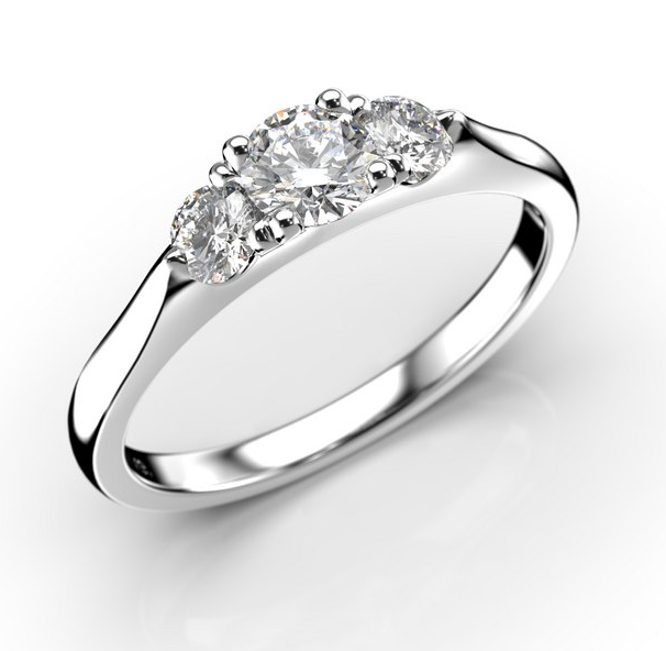 Festive Megan 572-050-VK on klassisen kaunis timanttisormus, jossa on ohut, miellyttävä runko ja kaunis kolmen briljanttihiotun timantin istutus. Sormuksen leveys on 1,9 mm, ja keskimmäisen timantin karaatiluku on 0,28 ja kirkkaiden sivutimanttien 0,11.