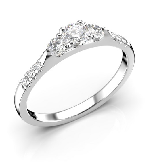 Festive Melissa 574-039-VK-timanttisormuksessa on 1920-luvun henkeä ja usean timantin istutus. Keskiosaa koristaa näyttävä koholle asetettu kolmen briljanttihiotun kiven istutus, joka jatkuu sormuksen rungossa pienempien timanttien muodossa. Sormuksen leveys on 1,5 mm, ja puolipyöreä rakenne istuu pehmeästi sormessa. Keskimmäisten timanttien karaattiluvu 1 x 0,20 ct + 2 x 0,07 c, ja kuuden sivutimantin 0,009 ct.