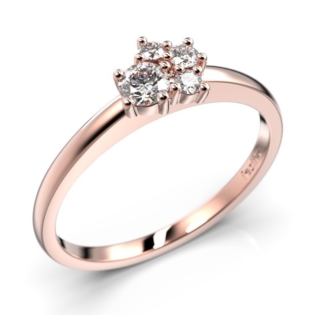 Kotimaisessa Festive Nadja Bloom monikivisessä ruusukulta timanttisormuksessa 691-017-PK loistavat kirkkaat timantit kauniissa istutuksessa. Huolellisesti flakkasormuksen pintaan lisätyt jalokivet on hiottu perinteisellä briljantti-hionnalla, joka korostaa timanttien kirkkautta ja loistoa (0,10 + 0,03 + 2 x 0,02) yht. 0.17 ct. Sormuksen leveys on rungosta 1,5 mm, ja sormuksen etuosasta 5,6 mm.