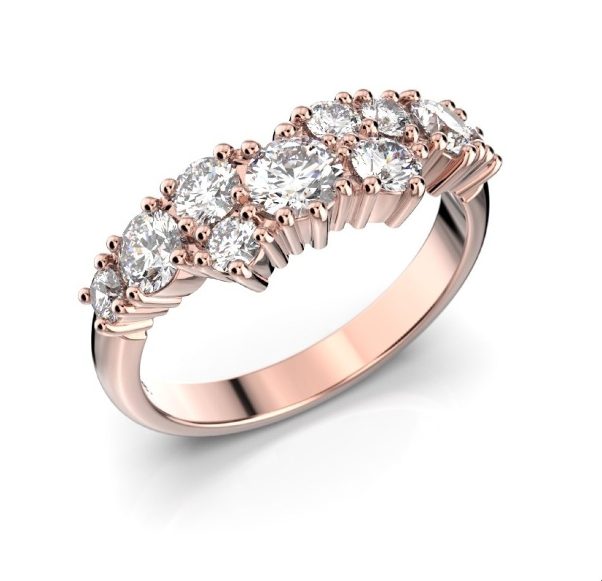 Festive Nadja Grand timanttisormus ruusukulta 669-105-PK on näyttävä kokonaisuus, jonka keskiössä kimaltaa yhteensä kymmenen timanttia 0,25+2x0,18+2x0,11+5x0,05 (Yht. 1,05 ct). Sormuksessa on käytetty (valintasi mukaan 14K tai 18K) ruusukultaa, ja flakkamallin reunat on kevyesti pyöristetty, jolloin sormus istuu tukevasti ja pehmeästi sormessa. Sormuksen leveys on 2,6 mm. Nadja sivukivisormuksesta on saatavana myös kelta- ja valkokultaversio. Yhdistämällä sormukset Juliette-rivisormukseen, luot täydellisen kokonaisuuden.