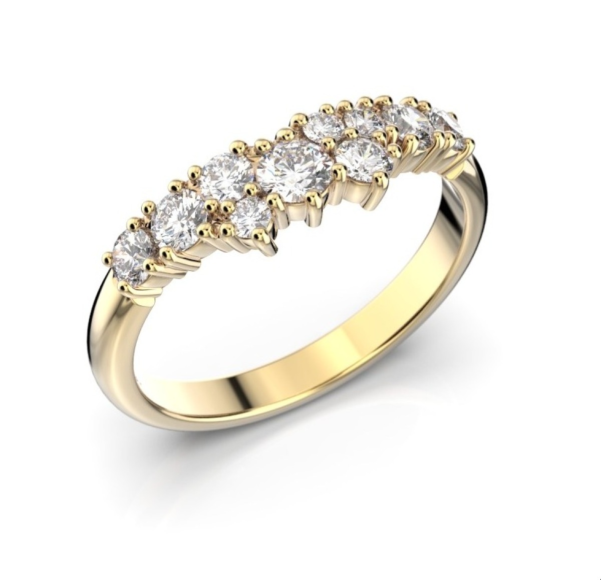 Festive Nadja Medium Timanttisormus keltakulta 668-050-KK on kaunis kokonaisuus, jonka keskiössä kimaltaa yhteensä kymmenen timanttia (0,10 + 2x0,07 + 4x0,05 + 3x0,02 (yht. 0,50 ct). Sormuksessa on käytetty (valintasi mukaan 14K tai 18K) klassista keltakultaa, ja flakkamallin reunat on kevyesti pyöristetty, jolloin sormus istuu tukevasti ja pehmeästi sormessa. Sormuksen leveys on 2,3 mm. Nadja sivukivisormuksesta on saatavana myös ruusu- ja valkokultaversio. Yhdistämällä sormukset Juliette-rivisormukseen, luot täydellisen kokonaisuuden.