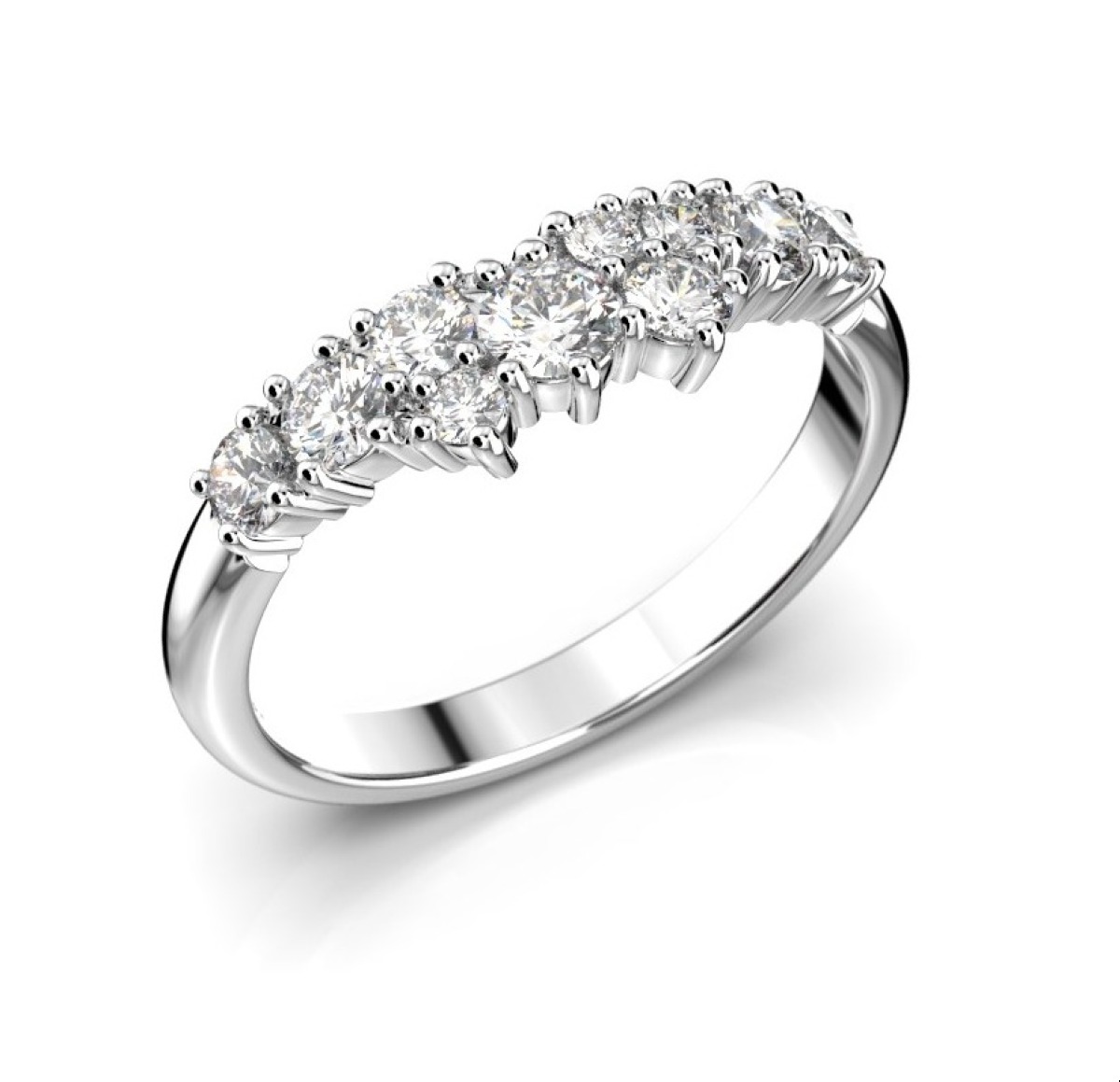 Festive Nadja Medium Timanttisormus valkokulta 668-050-VK on kaunis kokonaisuus, jonka keskiössä kimaltaa yhteensä kymmenen timanttia (0,10 + 2x0,07 + 4x0,05 + 3x0,02 (yht. 0,50 ct). Sormuksessa on käytetty (valintasi mukaan 14K tai 18K) valkokultaa, ja flakkamallin reunat on kevyesti pyöristetty, jolloin sormus istuu tukevasti ja pehmeästi sormessa. Sormuksen leveys on 2,3 mm. Nadja sivukivisormuksesta on saatavana myös kelta- ja ruusukultaversio. Yhdistämällä sormukset Juliette-rivisormukseen, luot täydellisen kokonaisuuden.