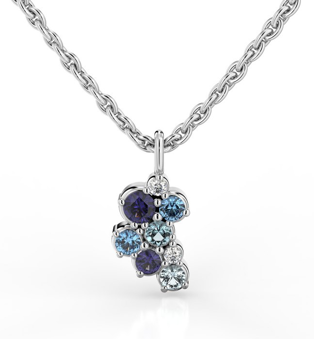 Festive Nelly Blue 630-022B-VK kaunista sinisävyistä timanttivärikiviriipusta koristaa timantit (2 x 0,01 ), sinisafiirit (0,03 x 0,05 ct) ja topaasit (4 x 0,03 ct). Kivet on ryhmitelty kauniisti hieman epätasaiseen riviin 13 mm pitkään runkoon tavalla, joka saa kivet säkenöimään toisiaan vasten ja luovat hyvin ainutlaatuisen kokonaisuuden. Yhdistä Nelly-korvakorujen kanssa ja luo ainutlaatuinen kokonaisuus. Ketju myydään erikseen.