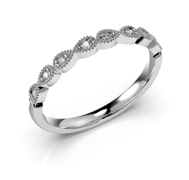 Festive Olga 593-008-VK on romanttisen hento timanttisormus, jonka etuosaa koristaa sydänten ketju ja kahdeksan 0,01 briljanttihiottua wesselton timanttia. Reunassa on pitsireunus, ja flakkarunko on hieman pyöristetty täydellisen istuvuuden takaamiseksi. Rungon paksuus on 2 mm.