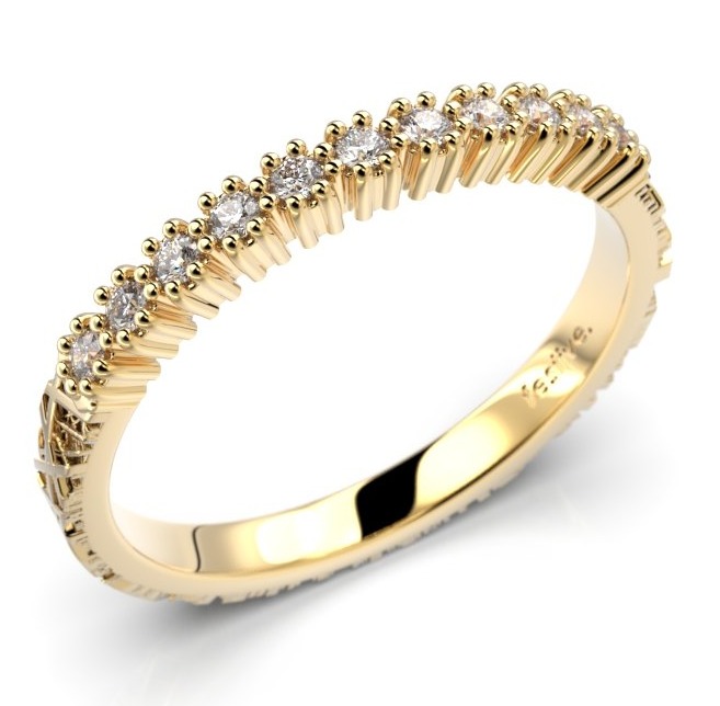 Festive Routa Tieva Siro Timanttisormus 687-011-KK on keltakultaa, ja sormuksen pintaa koristaa briljanttihiotut timantit 11 X 0,01 (yht. 0,11 ct). Sormuksen leveys on 2,3 mm.