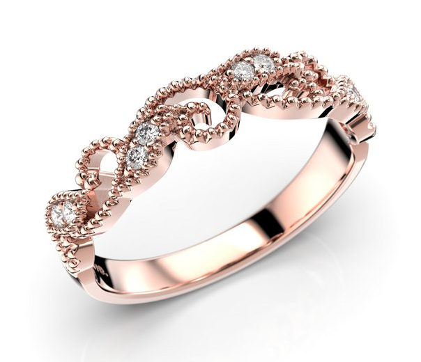 Festive Saga 585-010-PK on romanttinen filigraanitimanttisormus, jossa on kahdeksan 0,01 karaatin briljanttihiotun timantin istutus ja pyöristetty miellyttävä flakkarunko. Hieman eteenpäin levenevä 2 mm runko ja filigraanikuvio antavan sormukselle satumaisen ilmeen. Istutuskohdasta rungon leveys on 2,8 mm.