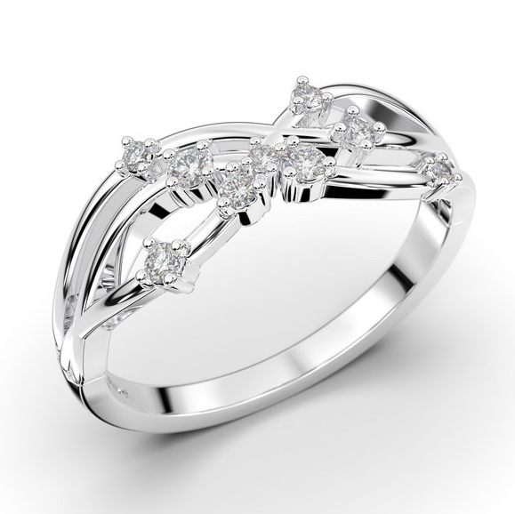 Festive Stella 602-012-VK-timanttisormuksessa on pohjoisesta tähtitaivaasta ja revontulista inspiraationsa saanut muotoilu. Sormuksen istusta koristaa 9 timanttia, joiden karaatiluku on yhtensä 0,12. Rungon leveys on 1,6 mm, ja istuksen kohdalta leveys on 6 mm.
