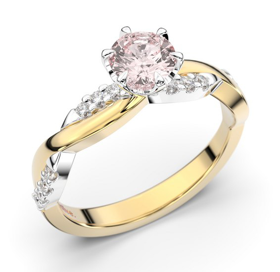 Festive Tiana 569-064M-KV-morganiittitimanttisormuksessa on kaunis kiertyvä runko, jossa kulta ja timantti-istutus kietoutuvat saumattomasti toisiinsa, ja romantisen ilmeen viimeistelee yksi suurempi kruunuistutettu 0,50 karaatin vaaleanpunainen morganiitti. 14 pienemmän timantin karaattiluku on yhteensä 0,14 karaattia. Sormuksen leveys on 3 mm, ja istutuksen kohdalta 6,5 mm. Rungon reunat on kevyesti pyöritetty mikä takaa täydellisen istuvuuden.