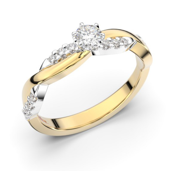 Festive Tiana 569-030-KV-timanttisormuksessa on kaunis kiertyvä runko, jossa kulta ja timantti-istutus kietoutuvat saumattomasti toisiinsa, ja ilmeen viimeistelee yksi suurempi kruunuistutettu 0,16 karaatin timantti. 14 pienemmän timantin karaattiluku on yhteensä 0,14 karaattia. Sormuksen leveys on 3 mm, ja istutuksen kohdalta 4,5 mm. Rungon reunat on kevyesti pyöritetty mikä takaa täydellisen istuvuuden.