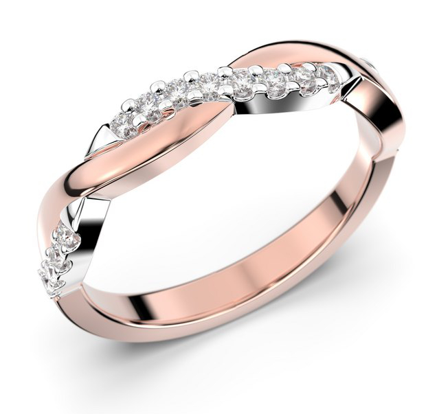 Festive Tiana 568-016-PK-timanttisormuksessa on kaunis kiertyvä runko, jossa kaksi erilaista kultaa kietoutuu saumattomasti toisiinsa, ja korun pinta on koristeltu briljanttihiotuin timantein, jotka sointuvat kauniisti puolipyöreää kaksiväristä runkoa vasten. 16 timantin karaattiluku on yhteensä 0,16 karaattia.