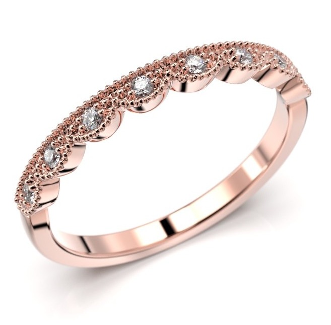 Festive Veera ruusukulta rivitimanttisormus 696-008-PK on kaunis sormus yksinään, ja istuu myös täydellisesti sileän tai yksikivisen sormuksen rinnalle vihkisormuksena tai kihlasormuksena. Veera timanttisormusta koristaa kahdeksan kappaletta 0,01 ct wesselton-timanttia. Rungon paksuus on 2,4 mm. Sormuksen toinen reuna on sileä, ja toista koristaa pitsireunus.