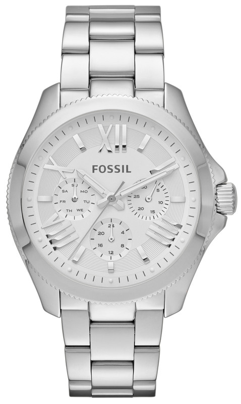 Fossil naisten rannekello AM4509. Kellon rungon leveys on 40mm ja paksuus 12mm. Rannekkeen leveys on 20mm. Kellossa päivyri, viikonivänäyttö sekä 24h näyttö. Fossil kelloille myönnetään kahden vuoden takuu. Kello toimitetaan valmistajan alkuperäisessä rasiassa.