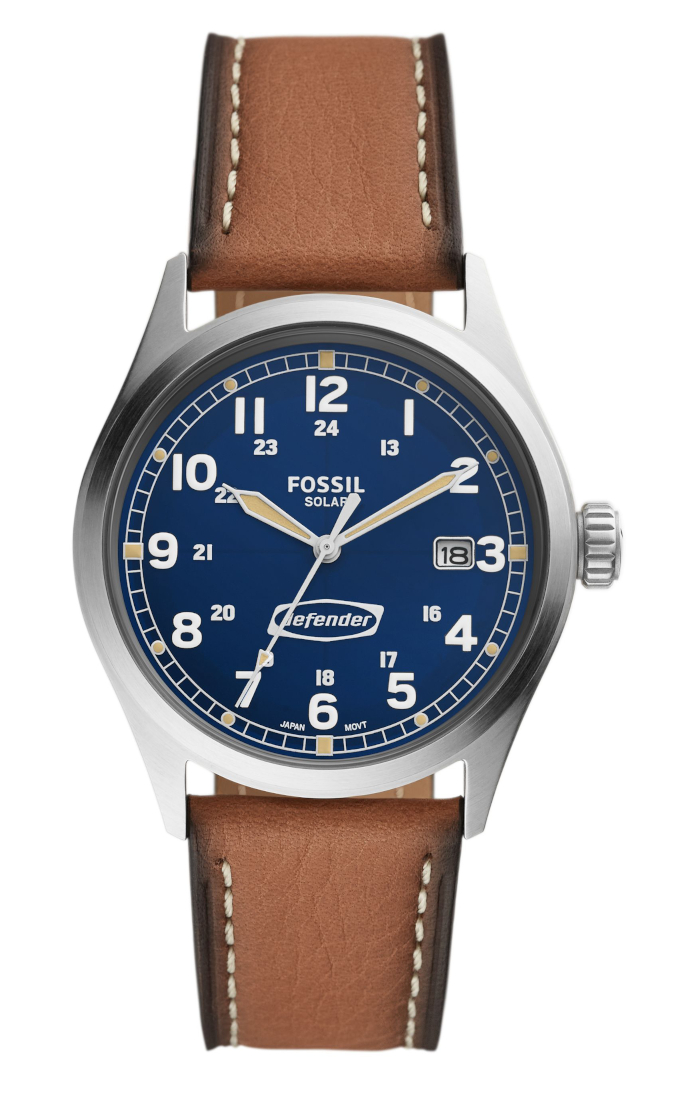 ‌Fossil Defender FS5975-rannekellossa on klassista americana-henkeä. Tämä hyvin retrohenkinen kello on täydellinen vapaa-ajan kelloksi, ja siinä on sopusuhtainen 40 mm leveä runko, selkeät numeroindeksit sinisellä pohjalla, päivä-päivyri sekä valkoisella tikkauksella varustettu, hieman kuluneen näköinen nahkaranneke. Kermanvaaleat sekunti-indeksit sekä viisarit viimeistelevät klassisen ilmeen. Fossil Defender FS5975 kuuluu vesitiiviysluokkaan 50m / 5atm, eli se on rajoitetusti vesitiivis (ei suositella uimista). Fossil-kellot toimitetaan valmistajan alkuperäisessä pakkauksessa, ja niillä on kahden vuoden takuu.