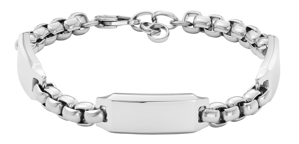 Panssariketjulla varustettu Fossil Drew rannekoru JF04400040 on helppo personoida itselle sopivaksi kaiverruksen avulla. Koru on kaksivärinen, ja sitä koristaa kolme 27,3 mm leveää laattaa. Ketjun pituus 195-220 mm. Fossil-korut toimitetaan valmistajan alkuperäisessä rasiassa.