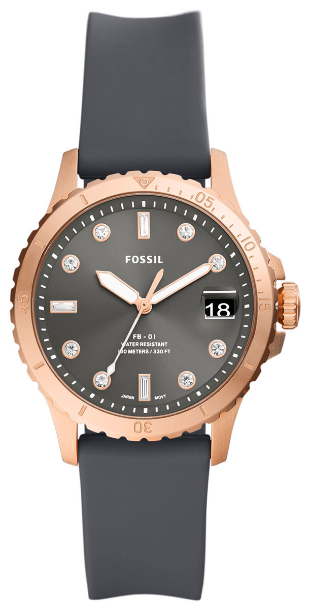 Fossil Fb-01 ES5293 on täydellinen statement-kello. Klassisesta sukelluskellosta inspiraationsa saaneessa FB-01-kellossa on harmaa silikoniranneke, ruusukullanvärinen bezel, kristalliindeksit ja harmaa sunray-kellotaulu.Kokonaisuuden viimeistelee 100m / 10atm vedenkesto eli kello on täysin vesitiivis. Kello sopii pintauintikäyttöön ja snorkkelisukellukseen, ei laitesukellukseen. Fossil-kellot toimitetaan valmistajan alkuperäisessä pakkauksessa ja niillä on kahden vuoden takuu.