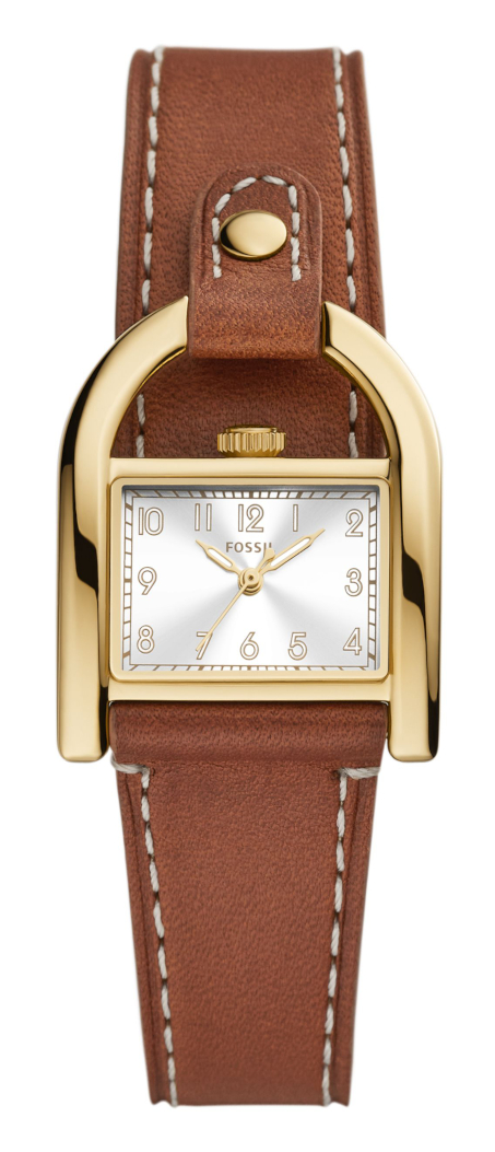 ‌Fossil Harwell ES5264 on ajaton klassikko, jossa on hyvin uniikki muotokieli. Ratsastussaappaan kannuksesta inspiraationsa saanut runko on kullanväristä terästä, ja rungon leveys on 28 mm. Valkoisin tikkauksin viimeistelty konjakinruskea nahkaranneke sointuu kauniisti kullanväristä runkoa vasten. Kullanväriset indeksit ovat helppolukuiset, ja kruunu sijaitsee poikkeuksellisti indeksin 12 kohdalla. Fossil Harwell ES5264 kuuluu vesitiiviysluokkaan 50m / 5atm, eli se on rajoitetusti vesitiivis (ei suositella uimista). Fossil-kellot toimitetaan valmistajan alkuperäisessä pakkauksessa, ja niillä on kahden vuoden takuu.