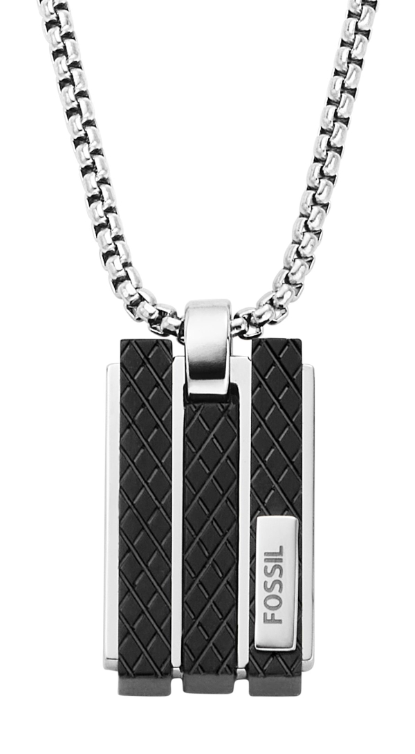Fossil Drew JF04412040 kaulakoru on näyttävä asuste jokaiselle miehelle. Arkiasusteen valinta ei ole koskaan ollut helpompaa. Koru on kaksivärinen, ja sitä koristaa yksi 42 mm leveä laatta, jossa on musta synteettinen zirkonia kivikoriste ja Fossil-logo. Fossil-korut toimitetaan valmistajan alkuperäisessä rasiassa.