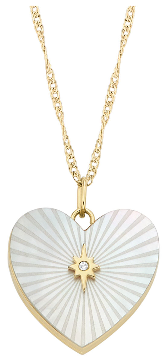Ketä sinä kannat lähellä sydäntäsi? Fossil Jewelry sydänkaulakorua JF04430710 koristaa klassinen, avattava medaljonki, jonka sisään voit tallettaa rakkaittesi kuvat. Medaljonki on mahdollista personoida kaiverruksella. Pintaa koristaa helmiäinen. Pituus: 406 mm+60 mm, Leveys: 17.8 mm, Korkeus: 17.7 mm.Fossil-korut toimitetaan valmistajan alkuperäisessä rasiassa.