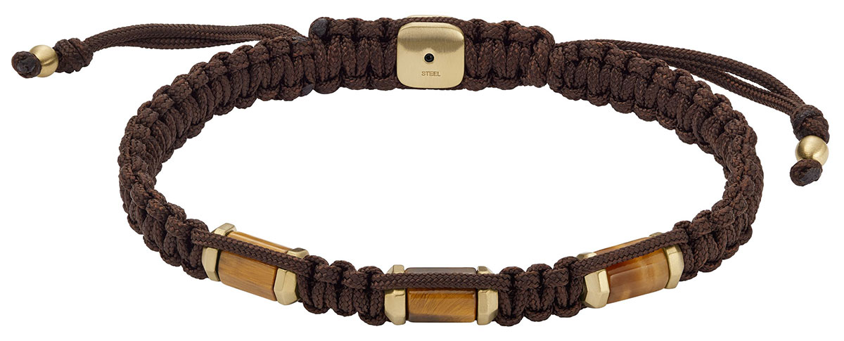 Fossil Jewelry rannekoru JF04471710 on tyylikäs asuste jokaiselle miehelle. Korua koristaa tekstiilinyöri ja ruskeat tiikerinsilmähelmet. Pituus: 400 mm+50 mm, Leveys: 8 mm. Fossil-korut toimitetaan valmistajan alkuperäisessä rasiassa.