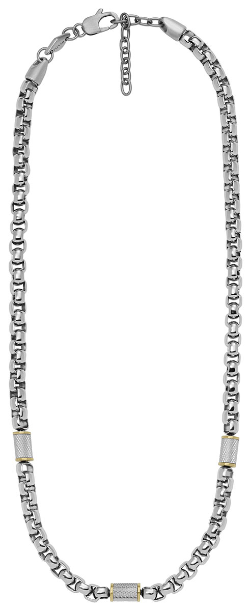Fossil JF04145998 -kaulakoru on valmistettu hopeanvärisestä ruostumattomasta teräksestä. Kaulaketjun pituus on 45,7 - 51,3 cm. Kiinnitys papukaijalukolla. Fossil-korut toimitetaan valmistajan alkuperäispakkauksessa.