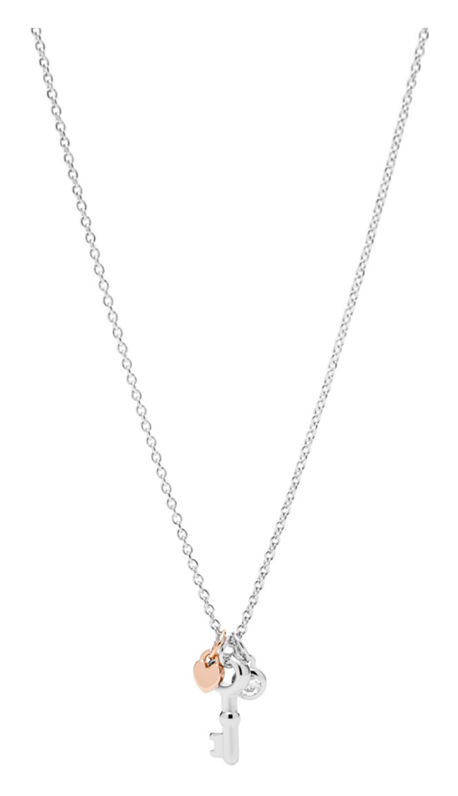 Fossil Vintage Key Sterling Silver Pendant Necklace JFS00467998 -kaulakoru on valmistettu sterling-hopeasta. Kaulakorun pituus on 41 - 45,5 cm. Kaulakorussa roikkuvan avaimen muotoisen riipuksen pituus on 12 mm. Fossil-korut toimitetaan valmistajan alkuperäisessä rasiassa.
