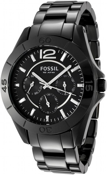 Naisten Fossil Keraaminen rannekello CE1003 rannekello. Kellon rungon leveys on 38mm ja rannekkeen leveys 18mm. Kellon runko ja ranneke ovat keramiikkaa, joka on lähes naarmuuntumaton materiaali. Kellossa päivyri, viikonpäivänäyttö sekä 24h näyttö. Fossil kelloille myönnetään kahden vuoden takuu ja ne toimitetaan postikuluitta valmistajan alkuperäisessä rasiassa.