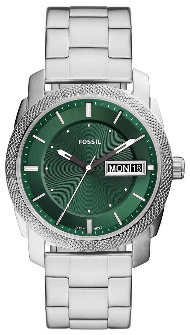 Fossil Machine FS5899 on tyylikäs miesten kello, jonka ruostumattomasta teräksestä valmistettu 42 mm leveä runko on hopeanvärinen. Rannekkeena tässä mallissa on hopeanvärinen ruostumaton teräsranneke, jonka leveys kiinnityskohdasta on 22 mm. Kellon ominaisuuksiin kuuluu päivyri ja viikonpäivänäyttö. Fossil FS5899 -kellon vihreää kellotaulua suojaa mineraalilasi. Kello kuuluu vesitiiviysluokkaan 50m / 5atm eli se on rajoitetusti vesitiivis (uintia ei suositella). Fossil-kellot toimitetaan valmistajan alkuperäisessä pakkauksessa ja niillä on kahden vuoden takuu.