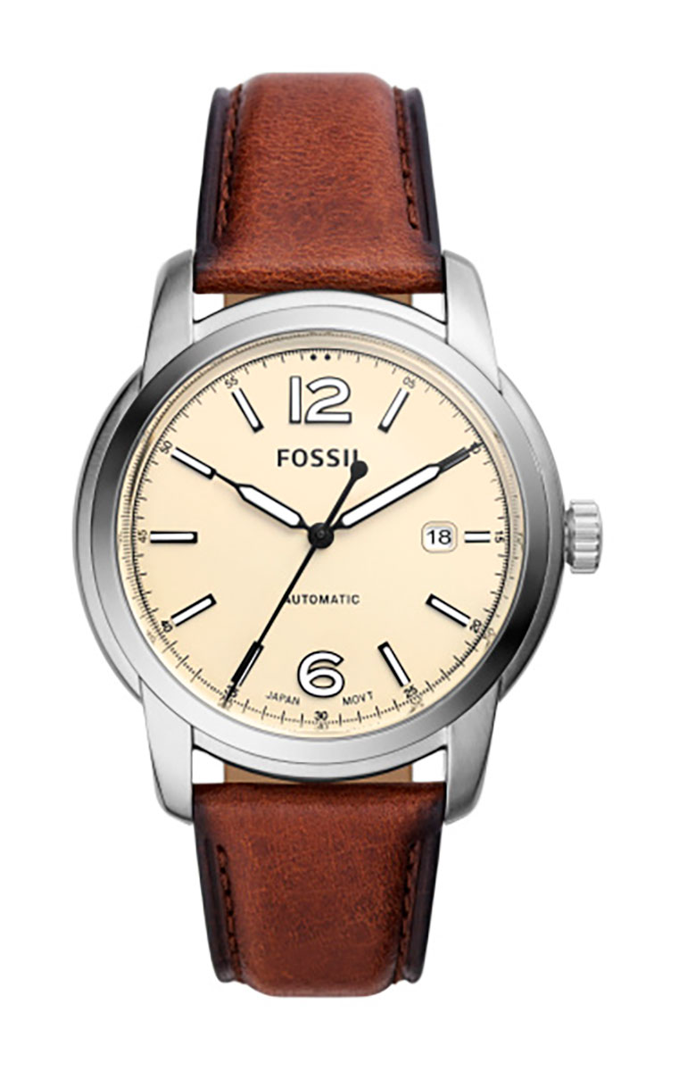 Fossil watch Heritage ME3221 miesten rannekello on tulos vuosikymmeniä kestäneestä omistautumisesta laadukkaaseen kellonvalmistukseen. Siinä on 43 mm leveä runko, beige kellotaulu jossa päivyri, valossa helposti luettavat monitahoiset indeksit ja osoittimet, tarkka japanilainen automaattinen koneisto ja kaksikupuinen, naarmuuntumaton safiirikristalli takaavat vertaansa vailla olevan selkeyden. Ruskea ranneke on laadukasta LiteHide™ -nahkaa, jonka leveys on kiinnityskohdasta 22 mm ja sisäympärysmitta 200+/- 5 mm. Kello kuuluu vesitiiviysluokkaan 50m / 5atm eli se on rajoitetusti vesitiivis (uintia ei suositella).