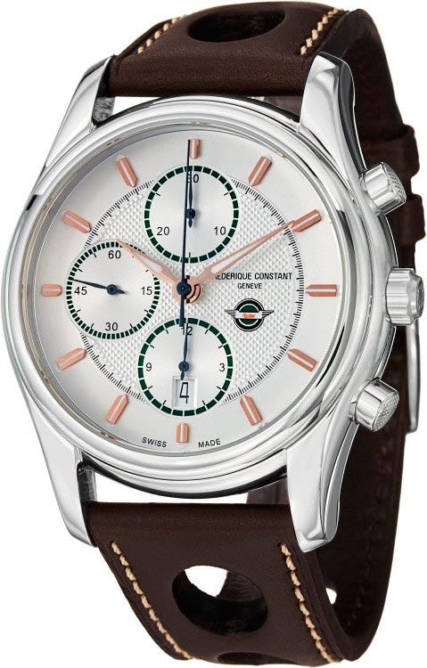 Tyylikäs Sveitsiläinen Frederique Constant Vintage Rally Healey limited edition FC-392HVG6B6 rannekello. Vintage Rally kellosarja saa käyntivoimansa laadukkaasta mekaanisesta automaattikoneistosta. Kelloja on valmistettu vain 1888 kappaletta. Kellon sarjanumero: 613/1888. Kellon rungon leveys on 43mm ja paksuus 14,5mm. Lisäksi kellossa on ajanotto.