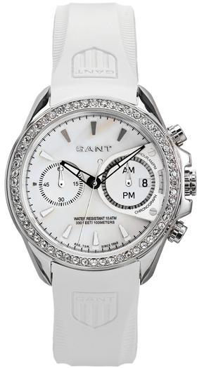 Naisten Gant W10651 bedstone rannekello kirkkailla Zirconia istutuksilla. Gant Bedstone W10651 mallissa on teräksen värinen runko ja valkoinen kumiranneke. Kellon teräsrungon leveys on 39mm ja paksuus 13mm. Valkoisen kumirannekkeen leveys on 16mm. Gant kelloille myönnetään 2 vuoden takuu ja ne toimitetaan valmistajan alkuperäisessä rasiassa postikuluitta!