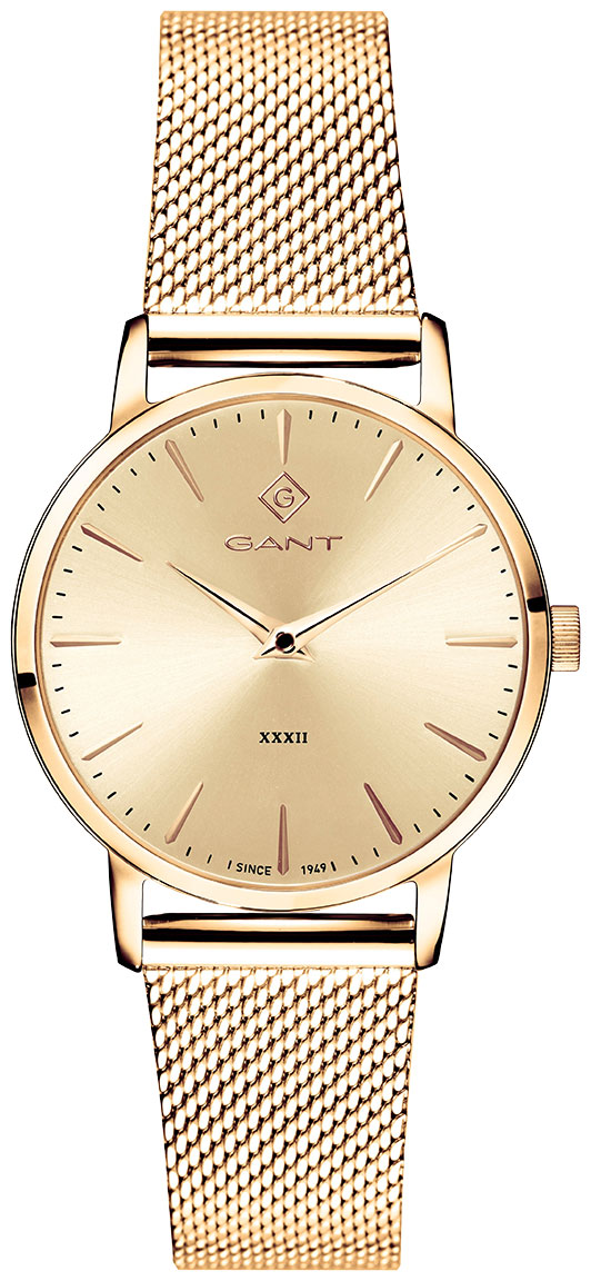 Gant Park Avenue 32-IPG G127016 on tyylikäs naisten kello, jonka ruostumattomasta teräksestä valmistettu 32 mm leveä ja 6 mm paksu runko on kullanvärinen. Rannekkeena tässä mallissa on kullanvärinen teräksinen mesh-ranneke, jonka leveys kiinnityskohdasta on 16 mm. Gant G127016 -kellon kullanväristä kellotaulua suojaa mineraalilasi. Kello kuuluu vesitiiviysluokkaan 50m / 5atm eli se on rajoitetusti vesitiivis (uintia ei suositella). Gant-kellot toimitetaan valmistajan alkuperäisessä pakkauksessa ja niillä on kahden vuoden takuu.