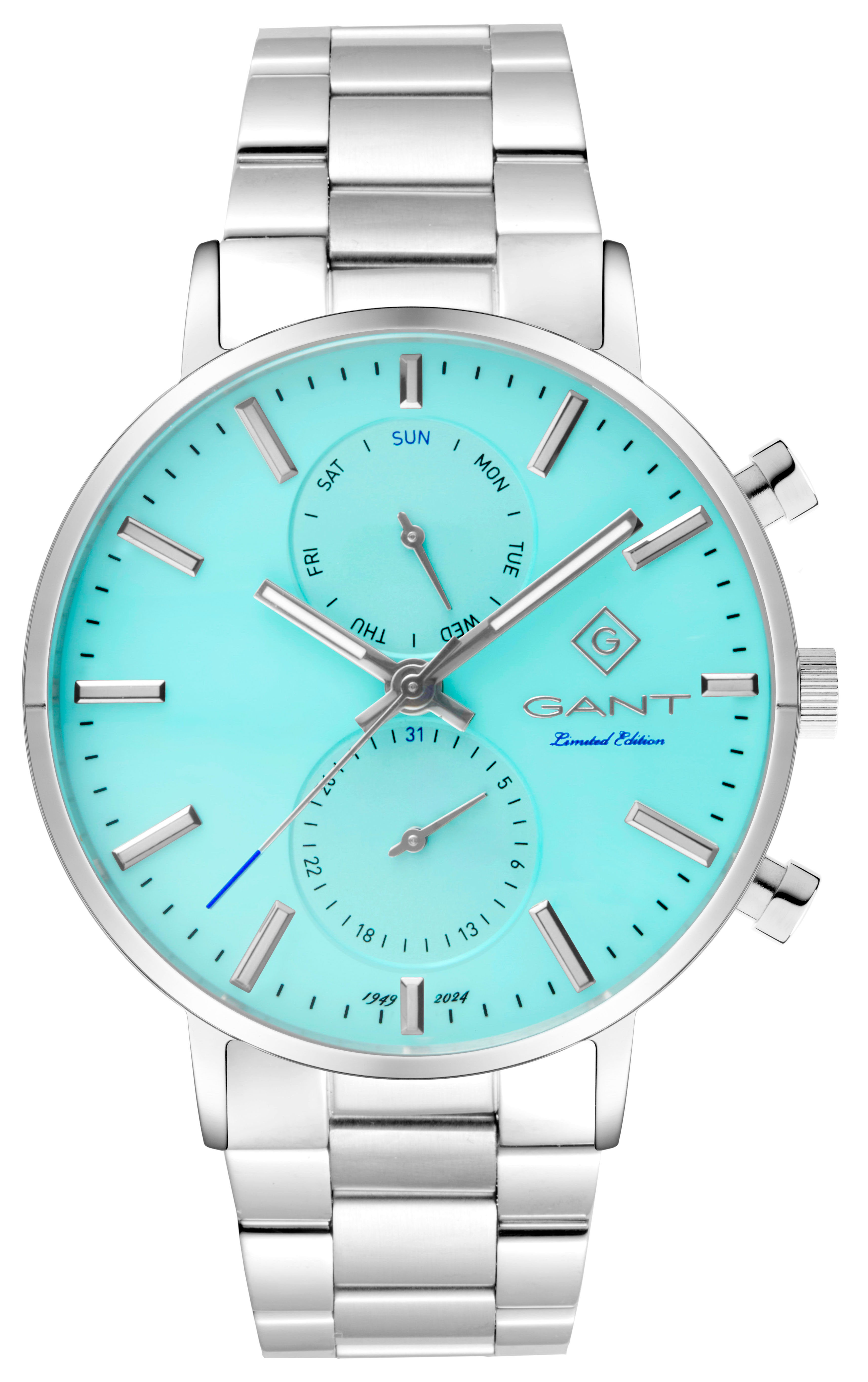 Gant Park Hill Day-Date II Limited Edition G121020 rannekello juhlistaa 75-vuotiasta Gantia, ja sen rikasta että monivaiheista historiaa. Turkoosiin kellotauluun on taltioitu “Limited Edition” kuvaamaan kellon rajoitettua erää sekä takapohjasta löytyy kaiverrus 75-juhlavuodesta. Tämä sulavalinjainen ja tyylikäs miesten kello sopii hyvin sekä arkikelloksi että puvunkelloksi. Kellossa on selkeä, suuri näyttö, jossa on viikonpäivän ja päivämäärän ilmaisin. Runko on 43,5 mm leveä ja 10 mm paksu, jonka vuoksi se on tukeva ranteessa. Ranneke on valmistettu ruostumattomasta teräksestä, jonka pituus on säädettävissä 150 - 215 mm. Rannekkeen leveys on 22 mm. Kello kuuluu vesitiiviysluokkaan 50m / 5atm eli se on rajoitetusti vesitiivis (uintia ei suositella). Gant-kelloilla on kahden vuoden takuu, ja ne toimitetaan valmistajan alkuperäisessä rasiassa.