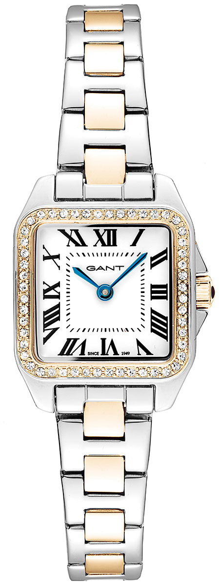 Gant Seneca Bijou G193102 naisten rannekellossa on hienostunut neliön muotoinen runko ja valkoinen mineraalilasilla suojattu kellotaulu, jossa on mustat roomalaiset indeksit sekä siniset minuutti- ja tuntiviisarit. Runko on leveydeltään 22,5 mm ja paksuudeltaan vain 6 mm. Kellossa on Miyota GL22 -kvartsikoneisto ja kellon kehys on koristeltu kirkkailla zirkonioilla. Kaksivärisen teräsrannekkeen leveys kiinnityskohdasta on vain 12 mm, mikä tekee kellosta erittäin miellyttävän pidettävän ranteessa. Gant Seneca Bijou G193102 kuuluu vesitiiviysluokkaan 30 m / 3 atm, eli se on roiskevesitiivis.