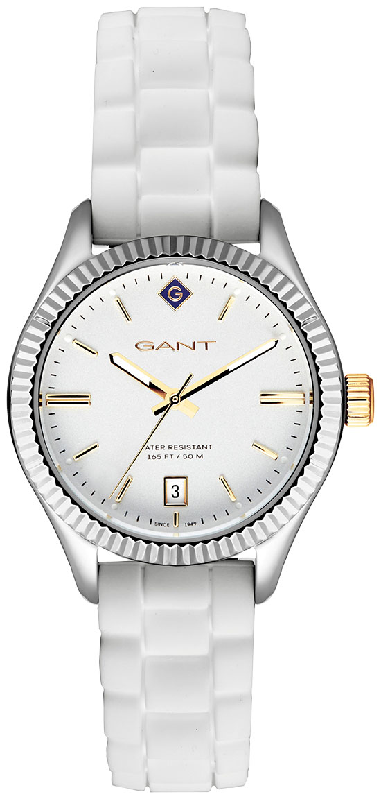 Gant Sussex G136017 on tyylikäs naisten kello, jonka ruostumattomasta teräksestä valmistettu 34 mm leveä ja 9 mm paksu runko on hopeanvärinen. Rannekkeena tässä mallissa on valkoinen kumiranneke, jonka leveys kiinnityskohdasta on 16 mm. Kellon ominaisuuksiin kuuluu päivyri. Gant G136017 -kellon valkoista kellotaulua suojaa mineraalilasi. Kello kuuluu vesitiiviysluokkaan 50m / 5atm eli se on rajoitetusti vesitiivis (uintia ei suositella). Gant-kellot toimitetaan valmistajan alkuperäisessä pakkauksessa ja niillä on kahden vuoden takuu.
