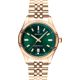 Gant Sussex Mid G171001 on klassinen naisten kello, joka on täydellinen lisä vapaa-ajan asuun. Perinteisten sukeltajan kellojen inspiroima Gant G171001 on varustettu 37,5 mm:iä leveällä ja 9 mm paksulla rungolla, joka on hyvin sopusuhtainen ranteessa, ja kellotaulussa on paksut kullanväriset baton-indeksit smarahdinvihreällä pohjalla. Päivyri on kello kuudessa. Kullanvärinen jubilee-ranneke on hyvin ajaton, ja ilmeen viimeistelee uritettu bezel. Rannekkeen leveys kiinnityskohdasta on 18 mm. Monipuolisen käyttökokemuksen viimeistelee 100m / 10atm vedenkestävyys, mikä tarkoittaa, että kello on vesitiivis. Kello sopii hyvin esimerkiksi pintauintikäyttöön ja snorkkelisukellukseen, ei laitesukellukseen. Gant- naisten kelloilla on 2 vuoden takuu, ja se toimitetaan valmistajan alkuperäisessä rasiassa.