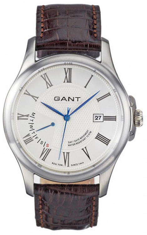 Miesten Gant W10372 West Creek kaksoispäivyrillä. Tämä elegantti rannekello sopii niin arkeen kuin juhlaan. Kellon rungon leveys on 44mm ja paksuus 12mm. Ruskean nahkarannekkeen leveys on 20mm. Gant kelloille myönnetään 2 vuoden takuu ja ne toimitetaan valmistajan alkuperäisessä rasiassa postikuluitta!