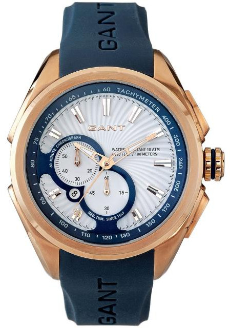 Miesten mustanpuhuva Gant W105814 Milford rannekello päivyrillä ja ajanottotoiminnolla. Koneistona kellossa on laadukas Miyotan 0S20 patterikoneisto. Kellon rungon leveys 45mm ja paksuus 14mm. Kumirannekkeen leveys on 20mm. Gant kelloille myönnetään 2 vuoden takuu ja ne toimitetaan valmistajan alkuperäisessä rasiassa postikuluitta!