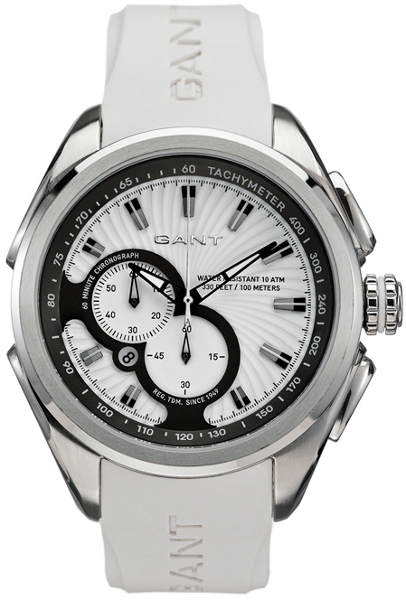 Miesten Gant W10585 Milford rannekello päivyrillä ja ajanottotoiminnolla. Gant Milford W10585 kellossa on valkoinen kumiranneke ja valkoinen kellotaulu. Koneistona kellossa on Miyotan 0S20 patterikoneisto. Kellon rungon leveys 45mm ja paksuus 14mm. Kumirannekkeen leveys on 20mm. Gant kelloille myönnetään 2 vuoden takuu ja ne toimitetaan valmistajan alkuperäisessä rasiassa postikuluitta!