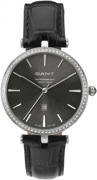 Naisten Gant W70283 Union rannekello kirkkailla Zirconia istutuksilla. Kellon ruostumattomasta teräksestä valmistetun rungon leveys on 38mm ja paksuus 10mm. Kellon harmaan nahkarannekken leveys on kiinnityskohdasta 18mm. Gant Union W70283 kellossa on päivyri. Gant kelloille myönnetään kahden vuoden takuu ja ne toimitetaan valmistajan alkuperäisessä rasiassa postikuluitta!