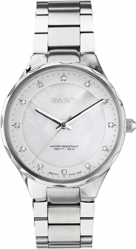 Naisten GANT W70412 Maybrook rannekello vaalealla helmiäiskellotaululla (Huom! Kellotaulun keskisosa huomattavasti tummempi kuin kuvassa!). Koneistona kellossa on Miyotan 2036 patterikoneisto. Kellon rungon leveys 38,5mm ja paksuus 8,5mm. Metallirannekkeen leveys on 19,5mm. Gant kelloille myönnetään 2 vuoden takuu ja ne toimitetaan valmistajan alkuperäisessä rasiassa postikuluitta!