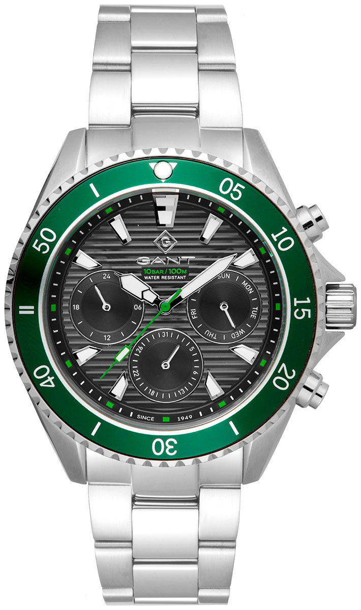 Gant Waterville Adventurer G184003 on mallikas kronografikello, jonka mustassa kellotaulussa on vihreä ulkoreuna, luminoidut osoittimet, päivyri ja rungon leveys on 45 mm. Hopeanvärisen teräsrannekkeen pituus on 160 - 210 mm ja leveys 22 mm kiinnityskohdasta. Kello on vesitiivis jopa 100 metriin asti. Gant-kelloilla on kahden vuoden takuu, ja ne toimitetaan valmistajan alkuperäisessä rasiassa.