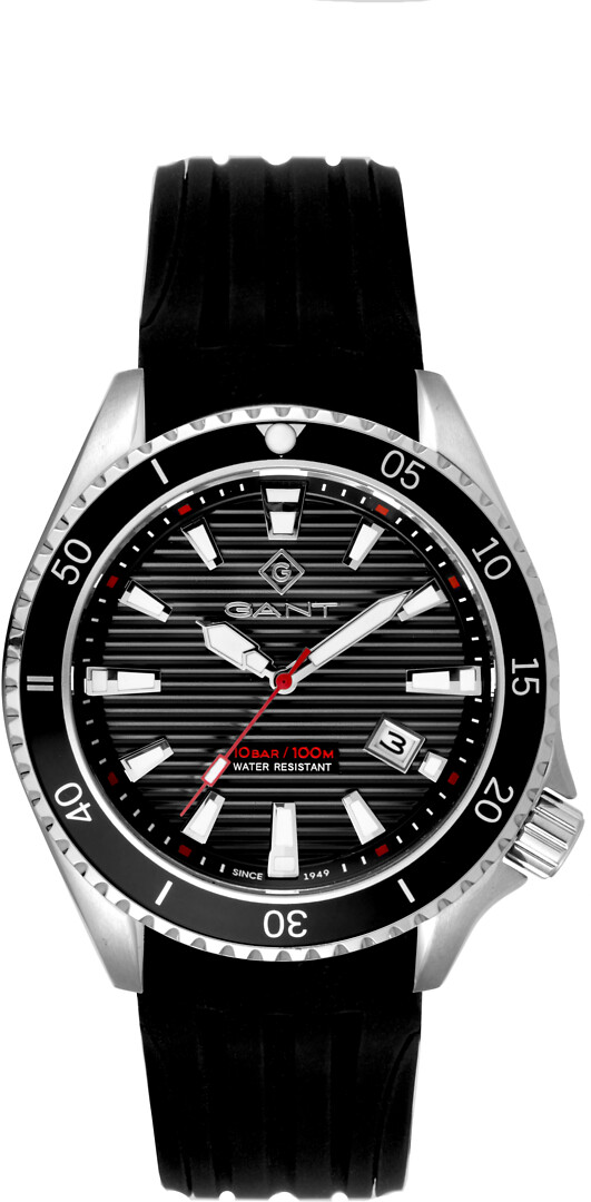 Gant Waterville G174015 miesten kello on täydellinen valinta kaikille sukeltajankellojen ystäville. Tämä täysin hopeanvärinen rannekello on ruostumatonta terästä, ja siinä on suuri 45 mm leveä runko. Rungon paksuus on ainoastaan 11 mm, mikä tekee tästä kellosta hyvin miellyttävän ranteessa, ja 45 mm leveä runko yhdistettynä mustaan silikonirannekkeeseen tekee tästä kellosta hyvin sopusuhtaisen kokonaisuuden. Mineraalilasi kätkee allensa mustan kellotaulun, jossa on aaltomainen kuvio, ja kirkkaan valkoiset luminoidut osoittimet ja indeksit. Kello neljässä istuva kruunu viimeistelee kellon klassisen ilmeen. Koneistona on Miyotan 2315-kvartsikoneisto. Gant G174015 on paitsi tyylikäs, se on myös hyvä valinta arkikäyttöön, ja kello kuuluu vesitiiviysluokkaan 100m / 10atm, ja on vesitiivis. Tämä sukeltajan kello sopii esimerkiksi pintauintikäyttöön ja snorkkelisukellukseen, ei laitesukellukseen. Gant -miesten kelloille myönnetään 2 vuoden takuu, ja ne toimitetaan valmistajan alkuperäisessä pakkauksessa.