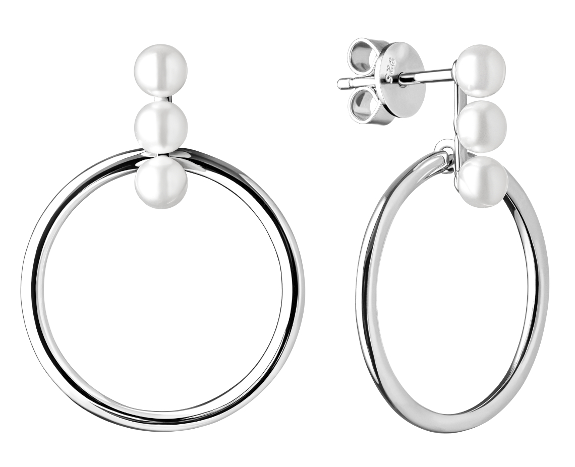 Gaura Pearls helmikorvakorut Evelyn MSK21237E ihastuttavat minimalistisella muodollaan. Korvarenkaita koristaa kolme makeanvedenhelmeä, ja runko on sterling-hopeaa. Helmien koko on 4-4,5 mm. Korvakorun koko 22,5 x 30 mm.