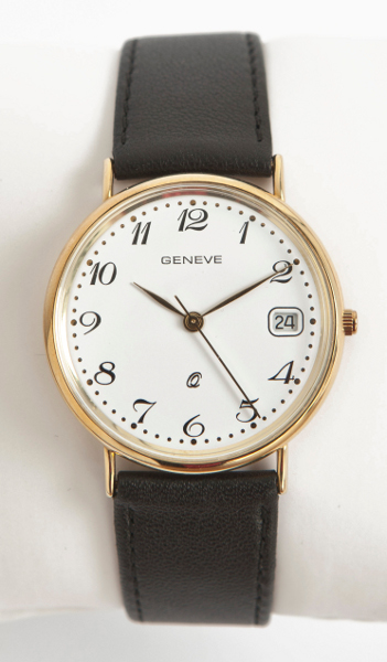 Miesten Geneve Kulta rannekello. 585 / 14 k Kultaa. Rungon leveys 33mm paksuus 7mm. Rannekkeen leveys 16mm.