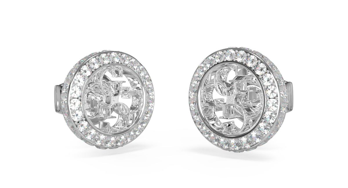 GUESS 4G Crush hopeanväriset tappikorvakorut JUBE04164JWRHT/U on koristeltu kirkkailla kristalleilla. Korvakorujen koko on 10 mm, ja takaa löytyy tappikiinnike. GUESS-korut toimitetaan valmistajan alkuperäisessä rasiassa.